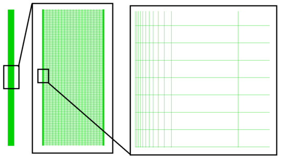 In this CFD study, 55,000, 110,000 and 180,000 (rounded figures) computational cells are considered to test the independence of the solution from the computational grid. The temperature distribution of the condenser and evaporator wall, at 20 s after the start of the process, is used to test the grid independency. Table 7 shows the average temperature of the evaporator and condenser section. It is evident that the temperature difference between the 110,000 and 180,000 mesh sizes is not significant. Therefore, in this CFD research, the 110,000 computing-cell is selected and used non-uniformly to reduce the computing time, as depicted in Figure 4. The compression of the mesh grid near the walls and their greater distance at points far from the walls are visible in this figure.