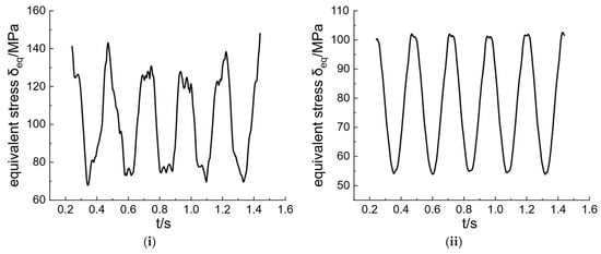 Stress curves of turbine working conditions. (i) 0.6 Q, (ii) 1.0 Q.