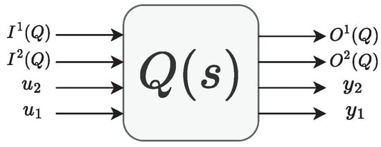 All of the nominal transfer functions of the extended model are combined together to define as demonstrated in Figure 6, where the operators and represent the input and output of the nominal transfer function associated with the subsystem (inverter) (), respectively, and are defined as follows: