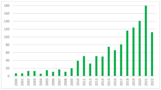 The number of publications related to sustainable transport in the period 2000–2022. Source: own elaboration based on the created database.