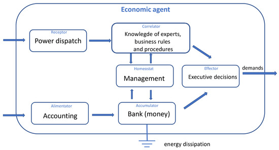 Figure 4. The power plant—the economic agent in the framework of Mazur’s theory. The organization of the agent is common for all types of power plants.