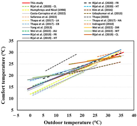 | Thapa and Indraganti [68] | NV Residential | FR | Cold & warm | Tc = 0.727Top + 5.6 | 0.66 | - | 9~27 |