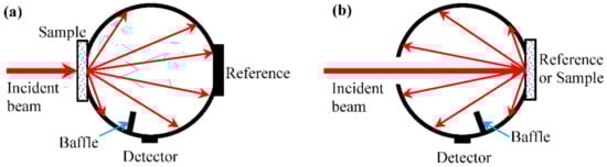 Measurement system [] diagram of (a) direction-hemispherical transmittance and (b) direction-hemispherical reflectance.