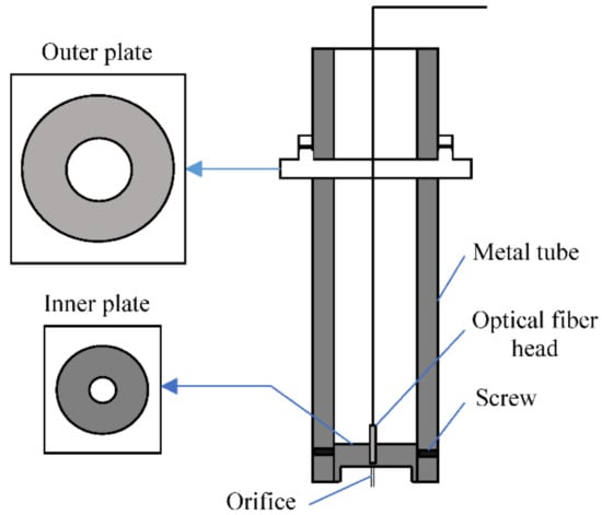 In the heating mode of high-temperature furnaces, the high-temperature furnace usually has a closed structure purchased commercially, while the upper limit of heating temperature is higher than that of electric heating, but there is still a certain upper limit of temperature restricted by heating elements. In addition, the emission measurement results will be interfered by the radiation signal emitted by the inner wall of the high-temperature furnace. In 2017 [], the emissivity of ZrB2-SiC composite was measured by the China Academy of Engineering Physics based on the emissivity principle using an FTIR spectrometer in the wavelength range of 2.5~25 μm, while the sample was heated by a high-temperature furnace and the temperature was measured by K-type thermocouple in the temperature range of 573–1173 K. On the basis of heating samples in a high-temperature furnace, the University of Central Florida [] used the system shown in Figure 15 to carry out emissivity measurement. In this system, the sample was heated to isothermal in the high-temperature furnace and measured by the radiation protection tube inserted into the furnace, which is shown in Figure 16. The optical fiber head is placed in a fixed position in the sunshield cylinder in order to avoid the radiation from the high-temperature furnace wall, heating element and ambient gas into the optical fiber end. In addition, the space between the fiber cladding and the inner wall of the shade cylinder was filled with SiO2 fibers for insulation, and the measurement time for each sample did not exceed 3 s, which can guarantee the shading cylinder would not be heated to a higher temperature and its emission radiation would not affect the emission measurement of the sample. Experiments in this study were operated on the YSZ thermal barrier coating with a thickness of 2 mm in the wavelength range of 0.4~1.08 μm and temperature range of 673–1423 K by grating spectrometer. However, it was not stated whether and how much the insertion of the radiation protection tube would affect the sample temperature in the study. Then, Rydzek [] et al. at the Bavarian Center for Applied Energy Research designed an emittance measurement apparatus to measure the angular dependent surface emittance of TiO2/Y2O3 ceramics, copper and an alloy at temperatures up to 1673 K with the detection angle from 0° to 85°. This apparatus adopted a cylindrical tube furnace with a wrapped electric resistance heating wire to heat samples in a vacuum or gaseous atmosphere. Some other researchers manufactured their own high-temperature heating cavity, as shown in Figure 17, which took the SiC tube as the sample heating cavity in the National Defense University of Munich [] (2013) to build the emissivity measurement system in the wavelength range of 0.6~15 μm and the temperature range of 773–1623 K. It was concluded that the length of the SiC tube met the isothermal region length of the tubular heater, and the measurement was carried out in atmosphere without encapsulated windows. The sample for measurement was a sintered SiC sample with a thickness of 5 mm and was mounted behind a conical water-cooled sample cooler to prevent the reflected radiation on the sample surface from being detected, as shown in Figure 18.