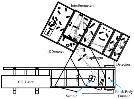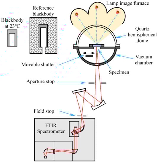 - del Campo, L.; Pérez-Sáez, R.B.; Esquisabel, X.; Fernández, I.; Tello, M.J. New experimental device for infrared spectral directional emissivity measurements in a controlled environment. Rev. Sci. Instrum. 2006, 77, 113111. [Google Scholar] [CrossRef]