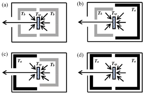 Schematic of temperature and emissivity measurements by the blackbody boundary condition (BBC) method, which (a–d) exhibits the different directional-hemispherical transmittance and reflectance) [].
