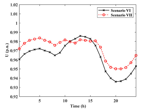 In this paper, the distflow branch model [33] is used to model the distribution network. The electric distribution network constraints include the active and reactive power balance constraints, the Ohm’s law constraints, the constraints of the relationship between current, voltage, and power, the security constraints of DN, etc.