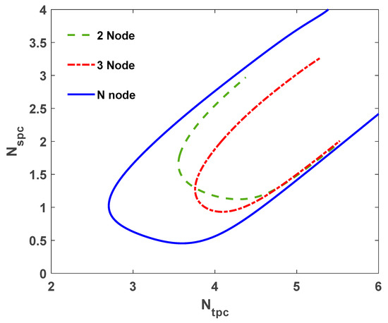 In order to validate and compare each nodalization scheme in Figure 9, only each nodalization scheme has been compared as these schemes are already validated with the different numerical models, as well as with experimental studies in previously reported works [9,24,25,30]. It has been observed that as the number of nodes increases, the stability boundary becomes broader, representing and covering a wider parametric range.