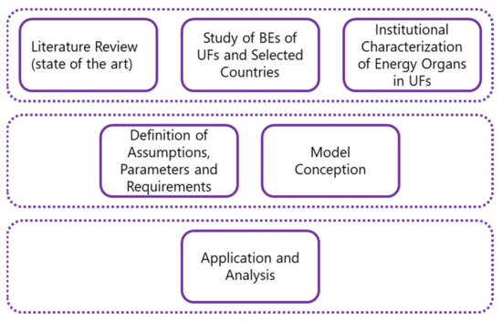 The selected works were analyzed, including the understanding of international parameters, the structure of recently published SEBs, and the understanding of organizational structures and institutional platforms for the management of the energy sector in the FUs. With the proper analysis, the appropriate model was discussed as a result of the second phase. The third phase consisted of the analysis of the model applied to the state of Mato Grosso do Sul in 2014 from the perspectives and conceptual parameters established in the literature.