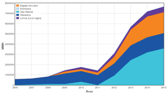 Figure 8. Electricity generation capacity (in Portuguese)—Energy Balance of Mato Grosso do Sul, 2016 [28].