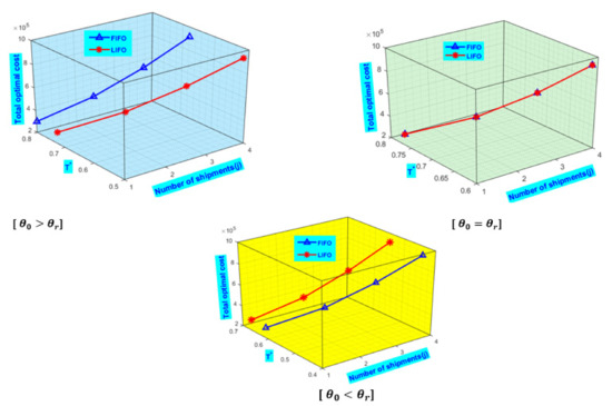 - Xu, X.; Bai, Q.; Chen, M. A comparison of different dispatching policies in two-warehouse inventory systems for deteriorating items over a finite time horizon. Appl. Math. Model. 2017, 41, 359–374. [Google Scholar] [CrossRef]
