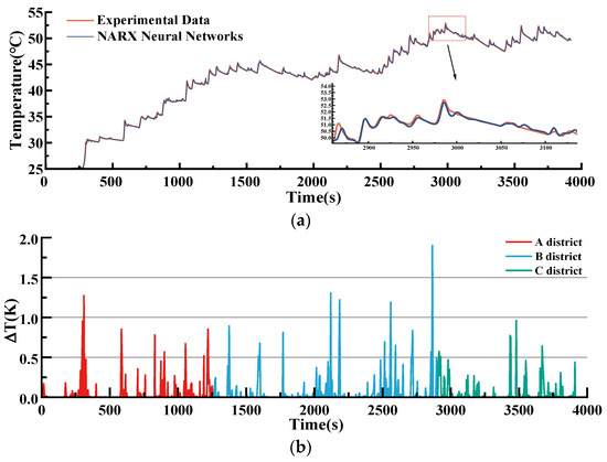 (a) Comparison of NARX neural network and actual battery temperature. (b) Error.