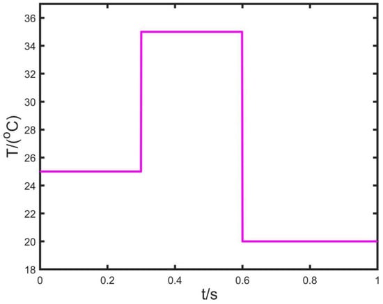 Figure 15 shows the temperature change curve of the photovoltaic cell PV1, where the light intensity increases from 25 °C to 35 °C at 0.5 s. Figure 16 shows the MPPT effect controlled by PI, LADRC and A-LADRC when the temperature of the PV cell PV1 changes. The results show that when the PV1 temperature changes, the tracking effect of the controller combined with PSO and PI fluctuates greatly, and it returns to the stable state again after 0.05 s, with a long adjustment time. The output power oscillation amplitude under the control of LADRC is 286.48 W, and the adjustment time is 0.007 s. The oscillation amplitude of output power under A-LADRC control is 112.57 W, and the adjustment time is 0.002 s. The results show that when the temperature of the PV cell PV1 changes, the other two controllers, except for the PI controller, can effectively suppress the interference. However, A-LADRC has good anti-interference ability and control performance.