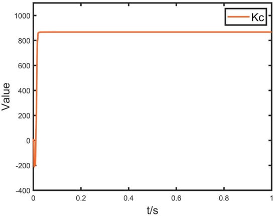 APC is used to adjust the value in the LADRC controller in real-time in this paper. When the photovoltaic array is conducive to the stability analysis of this system, it provides a novel method to improve the stability of the controller. Formula (24) gives the adaptive law of . The adaptive adjustment curve of is shown in Figure 6 and Figure 12. It shows that the adaptive adjustment curve of changes with the change of external conditions.