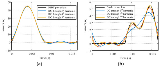 Inverse Fourier transform of (a) IGBT power loss and (b) diode power loss in a PV inverter.