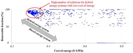 - It was observed that the proposed system reduced the cost of energy from $1.14 per kW in the diesel-based base case to $0.29 per kW.