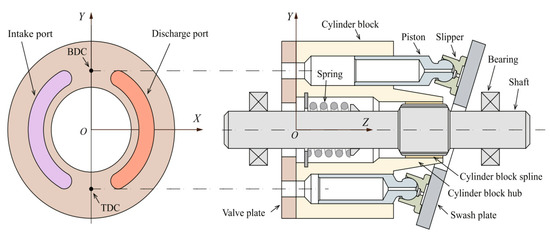 The general configuration of the swash-plate type axial piston pump. Reprinted with permission from Ref. [24]. 2017, Springer.