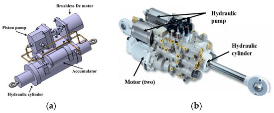 EHA with different redundancy. (a) Single redundancy EHA physical prototype. Reprinted with permission from Ref. [9]. 2014, Elsevier; (b) Double redundancy EHA physical prototype applied on F-35. Reprinted with permission from Ref. [10]. 2019, AIAA.
