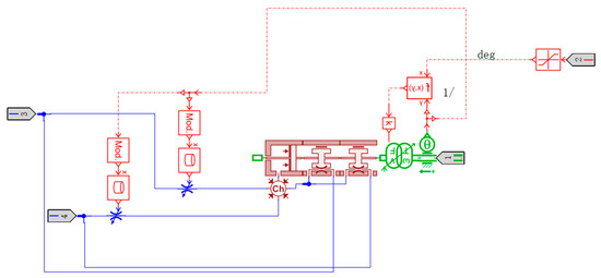 where and are the initial volume of the oil inlet and return chambers; and is the effective area of the inlet and return chamber pistons; and are the actuator inlet and outlet flow rate; and is the actuator inlet and outlet chamber pressure; is the internal leakage flow rate of the actuator and is the actuator external leakage flow rate; and is the piston displacement.