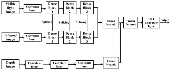 The key technology of unmanned perception in mines is limited by problems such as insufficient light in mines, poor light stability, and coal dust interference, and it is more difficult to focus on feature collection, feature extraction, and feature construction technology with just a single sensor. To improve the data quality, the multi-sensor fusion strategy is generally used for feature extraction to realize the expression of rich information, thereby improving the detection accuracy of downhole targets. The principle of step-by-step multi-characteristic fusion is shown in Figure 9.