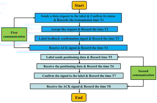 Flow chart of twice communication between positioning base station and positioning tag in SDS-TWR algorithm.