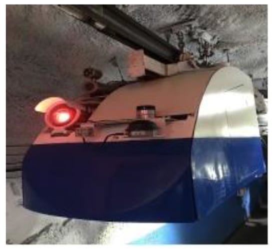 An underground unmanned, trackless, rubber-tired vehicle with infrared top tracking and its control system was proposed by the Bao research team in 2018. The track set on top of the roadway is recognized by the infrared sensor mounted on top of the rubber-tired trackless vehicle. In order to design an unmanned driving system for battery-powered rubber-wheeled vehicles, line navigation, which depends on a range of sensors fitted on the body to perceive the environment and plan vehicle movements, is utilized. After that, it collaborated with the Taiyuan Research Institute of the China Coal Science and Industry Group to jointly develop and submit an innovation patent application for the first underground unmanned, trackless, rubber-wheel vehicle and its driving control technique in China. In November 2020, the Tashan Coal Mine of the Tongmei Group successfully completed the underground trial operation of the first unmanned, trackless, rubber-wheeled vehicle in China, as depicted in Figure 3. The Shijiazhuang Coal Machinery Plant finished the autonomous trial operation of a monorail crane in October 2021. This monorail crane is capable of realizing intelligent functions including perception, positioning, and obstacle avoidance, as well as complete point-to-point intelligent driving. To guarantee safety when driving, emergency stop protection measures can be used when approaching objects within a safe distance. To increase vehicle safety and longevity, intelligent deceleration and parking can be implemented prior to parking.