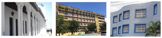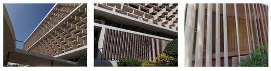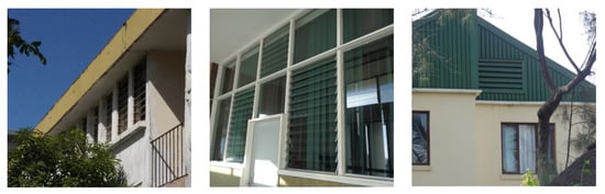 Examples of exterior elements that promote shading are integrated into the building architecture in Beira in Mozambique, including fixed (vertical and horizontal) canopies, movable vertical canopies, projecting balconies, fixed overhang grids, or the existence of an exterior façade with cast elements for shading.