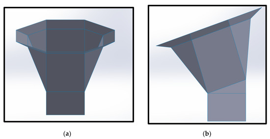 After designing the funnel with CAD software, the box on top of which the funnel is kept is designed too. The box needs to be big enough to be able to accommodate all the vessels in the house. After following the above design methodology, a funnel-type solar cooker was designed, and the images are shown in Figure 1.