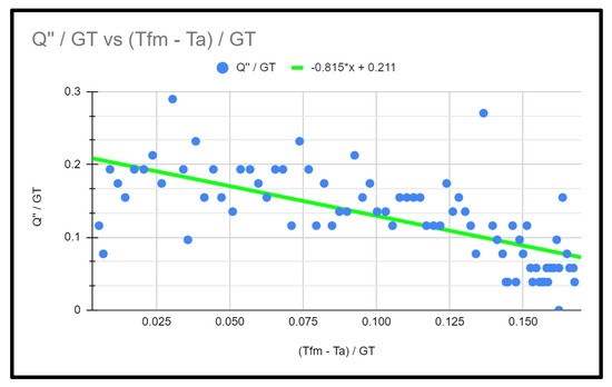 The plot of Q″/GT vs. (Tfm-Ta)/GT and the line of best fit of the plotted points.