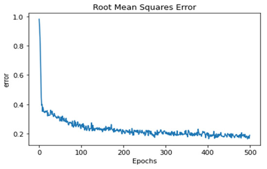 The dataset is split into 90% for training and 10% for testing. As the amount of dataset is very limited, the training set with 70% or 80% ratio doesn’t improve the accuracy as model saturated to 89%. Therefore, 90% from the dataset is used in the training set and the remaining in the training set. The model is trained for 500 epochs with a batch size of 32. 500 epochs are the saturation point of this model as the accuracy reached 99% and Increasing the epochs above 500 doesn’t improving accuracy as seen in Figure 14.
