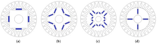 Various LSPMSM rotor layouts: (a) radial-type; (b) V-type; (c) W-type; (d) spoke-type.