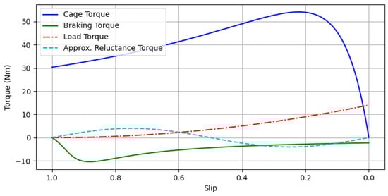 For determining synchronization capabilities of LSPMSM designs, the region between asynchronous and synchronous operation is of utmost importance. Therefore, the analytical cage torque Equation (11) used by Chama et al. [] appears to be a good option.