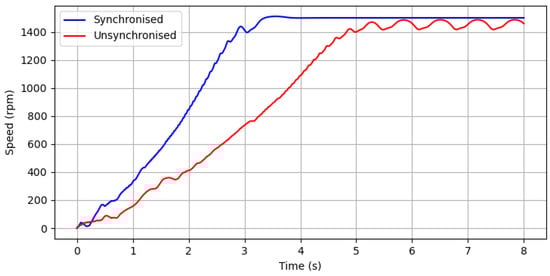Speed vs. time graphs for a synchronized and un-synchronized motor.
