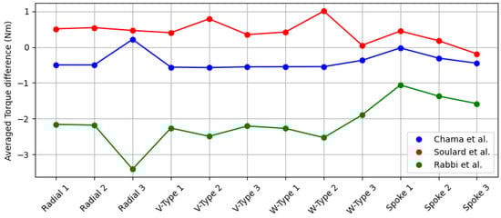 Average torque difference of various (Rabbi et al. [], Chama et al. [], Soulard et al. []) analytical s from target for each motor design.