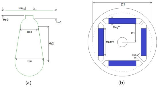 - Elistratova, V.; Hecquet, M.; Brochet, P.; Vizireanu, D.; Dessoude, M. Analytical approach for optimal design of a line-start internal permanent magnet synchronous motor. In Proceedings of the 2013 15th European Conference on Power Electronics and Applications (EPE), Lille, France, 2–6 September 2013; pp. 1–7. [Google Scholar] [CrossRef]