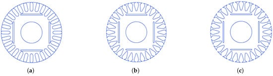 - Niaz Azari, M.; Mirsalim, M. Performance Analysis of a Line-start Permanent Magnet Motor with Slots on Solid Rotor Using Finite-element Method. Electr. Power Compon. Syst. 2013, 41, 1159–1172. [Google Scholar] [CrossRef]