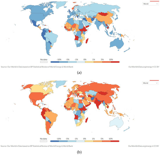 Annual change in primary energy consumption: (a) 2020, (b) 2021.
