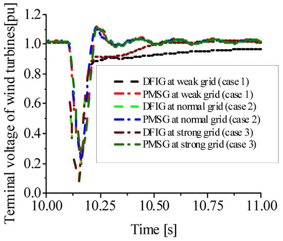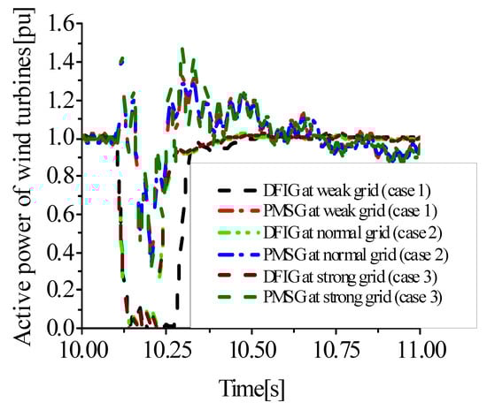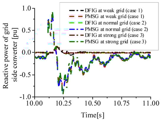 5.1. Operation of the DFIG and PMSG Wind Turbines at Different Grid Strengths