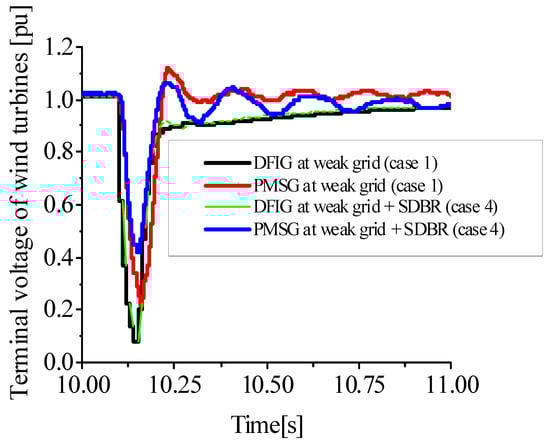 5.2. Improving the Performance of DFIG and PMSG Wind Turbines in Weak Grids Considering the Effective Sizing of SDBR