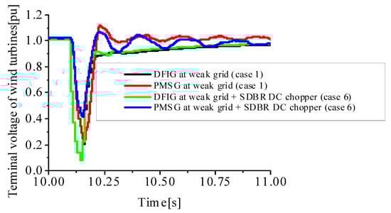 5.4. Improving the Performance of DFIG and PMSG Wind Turbines in Weak Grids Considering SDBR and over Voltage Protection System