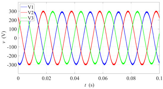 In the case of voltage, the RMS value of the minimum voltage (VAB) was multiplied by 0.991, and the RMS value of the maximum voltage (VCA) by 1.009, leaving VBC unchanged, as shown in (5).
