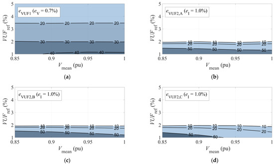 If all the graphs in Figure 8 are compared for VUFref = 2%, it is observed that eVUF1 ≈ 30%, while eVUF,2,A, eVUF,2,B, and eVUF,2,C are less than 10%.