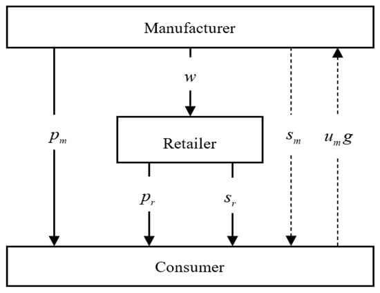 As the quality of life continues to improve, consumers’ needs are also changing. While consumers are concerned about price, they are increasingly focused on the quality of service provided by the merchant and on their personal experience when shopping. Pi et al. [4] used game theory and a two-stage optimization approach to study the pricing and service strategies of retailers in a dual-channel supply chain system consisting of one manufacturer and two retailers and found that the interaction between retail prices and service strategies depends on the sensitivity to self-service, cross-service, and cross-price. Wang et al. [5] studied the pricing and service decisions of complementary products in a dual-channel supply chain consisting of two manufacturers and one retailer. He et al. [6] consider a two-channel supply chain consisting of a manufacturer and a retailer, with uniform or separate pricing by the manufacturer. The results found that the level of logistics was positively related to e-tailing prices and that the level of logistics services played a positive role in the manufacturer’s national advertising expenditures. Guo et al. [7] analyzed the impact of pre-sales service and delivery time parameters on pricing and supply chain performance under centralized and decentralized decision making. The results showed that the sensitivity of pre-sales service level did not always positively affect retailers’ profits when centralized decision making was in place in a two-channel structure, but it positively affected price, pre-sales service level, and retailers’ demand. Xin et al. [8] proposed a two-level two-channel supply chain consisting of a manufacturer and a retailer, and a Stackelberg game was used to describe the optimal decisions of supply chain participants considering product pricing, CSR level and service level in the supply chain, and the results showed that service level has a significant effect on the pricing decisions of all participants in the supply chain. Pu et al. [9] studied the impact of consumer free-rider behavior on supply chain decisions by considering a situation where consumers in online channels can enjoy pre-sales services in offline channels for free and designed a service cost-sharing contract to improve supply chain performance. Zhang et al. [10] studied the impact of consumer free-rider behavior on supply chain decisions in a retailer-led supply chain, facing the invasion of the manufacturer’s direct sales channel, the retailer can effectively resist the invasion of the direct sales channel by improving the service level of the traditional channel. Wu et al. [11] studied the pricing decisions and profits of a dual-channel reverse supply chain with a recycling center and a third-party recycler under centralized and decentralized decision-making, respectively, and showed that as the consumer’s online channel preference increases, the profits of recycling centers and supply chain systems will increase, while the profits of third-party recyclers will decrease. Zhang et al. [12] used variational inequalities to develop an equilibrium model of a dual-channel supply chain network considering pricing and service decisions, and found that the introduction of online channels can bring more profits to the entire dual-channel supply chain network, and that manufacturers should provide reasonable profit allocation schemes for retailers to get their participation in the supply chain network. Zhou et al. [13] studied the dual-channel pricing and service strategy issues in a dual-channel supply chain, in which the manufacturer’s online channel provides free rides to retailers’ pre-sales services by offering SCS contracts, and conclude that in both pricing schemes, SCS contracts can effectively incentivize retailers to improve their service levels when free rides are offered. Guo et al. [14] studied the supply chain under the sharing economy based on the social responsibility perspective of Xia et al. [15]. studied service level and distribution channel decisions in two competing service supply chains, focusing on how service competition affects channel structure. Guajardo et al. [16] studied the service level and distribution channel decisions in two competing service supply chains with significantly heterogeneous service preference for customer groups under after-sales service differentiation strategies.