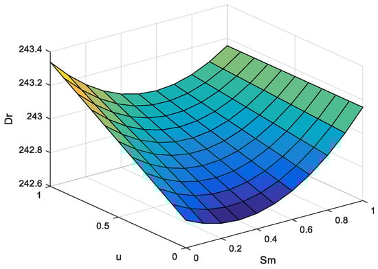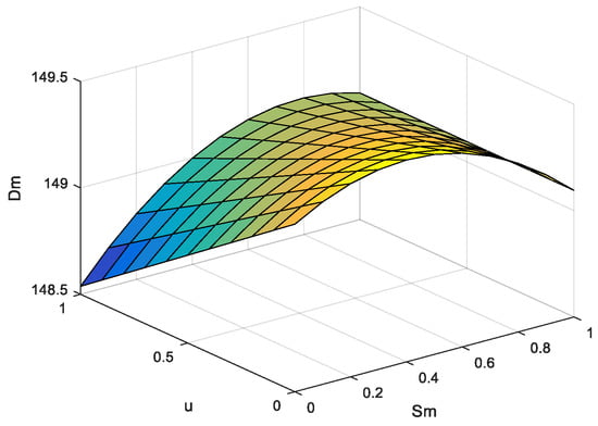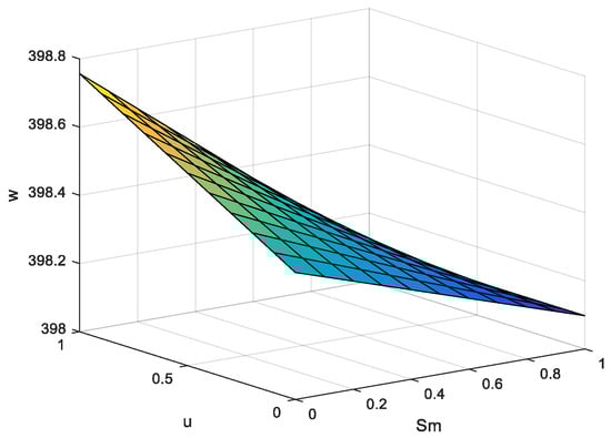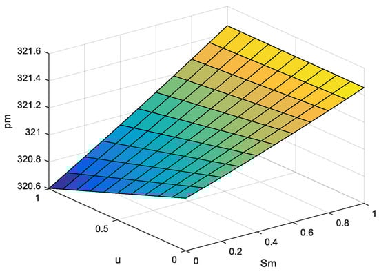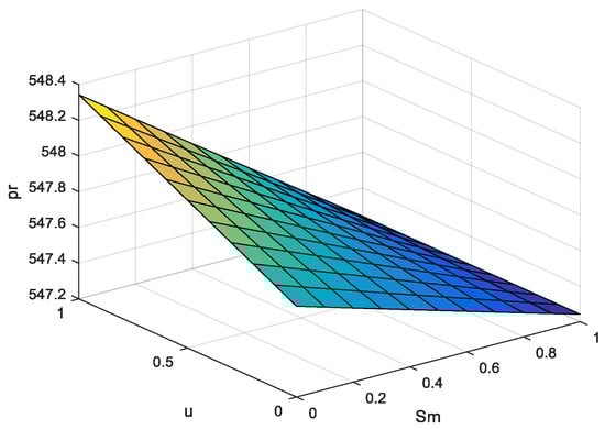 This section discusses the impact of network channel service levels and return rates on pricing decisions in a dual-channel supply chain, using Matlab for simulation studies. Referring to the related studies [32,34], the parameters were assigned as , , , , , , , , , network channel service level varies in the range (0,1), and return rate varies in the range (0,1). Figure 2, Figure 3 and Figure 4 represent the effects of network channel service level and return rate on network channel sales price , traditional channel sales price , and wholesale price , respectively.