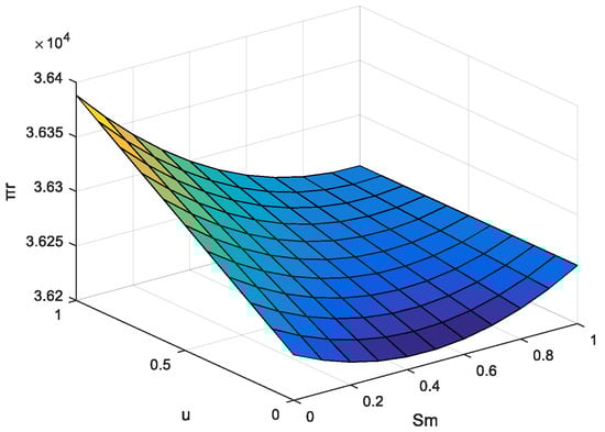 As can be seen from Figure 7, retailer profit decreases and then increases as the level of service in the network channel increases, and gradually increases as the return rate increases. From Figure 8, it can be seen that with the improvement of the service level of the network channel, the manufacturer’s profit increases and then decreases slightly with the increase of the return rate. With the improvement of service level, the improvement of service experience is more obvious, the network channel still has a certain price advantage, consumers move from traditional channels to network channels, the demand of network channels increases and the demand of traditional channels decreases; the manufacturer’s profit increases and the retailer’s profit decreases.