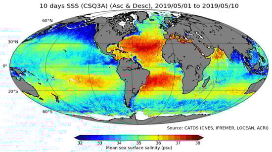 - Boutin, J.; Vergely, J.L.; Marchand, S.; d’Amico, F.; Hasson, A.; Kolodziejczyk, N.; Reul, N.; Reverdin, G.; Vialard, J. New SMOS Sea Surface Salinity with reduced systematic errors and improved variability. Remote Sens. Environ. 2018, 214, 115–134. [Google Scholar] [CrossRef]