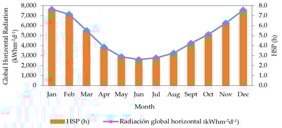 - HS Eficiencia Energética, Hora Solar Pico (HSP). 2022. Available online: https://certificacionenergetica.info/hora-solar-pico-hsp/ (accessed on 21 September 2022).