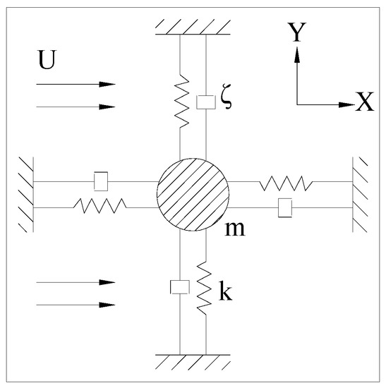 In this paper, the experimental model of the vortex-induced vibration generator is simplified into the following physical model, as shown in Figure 2.