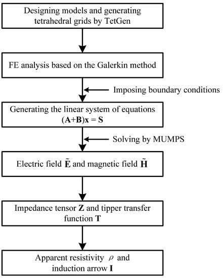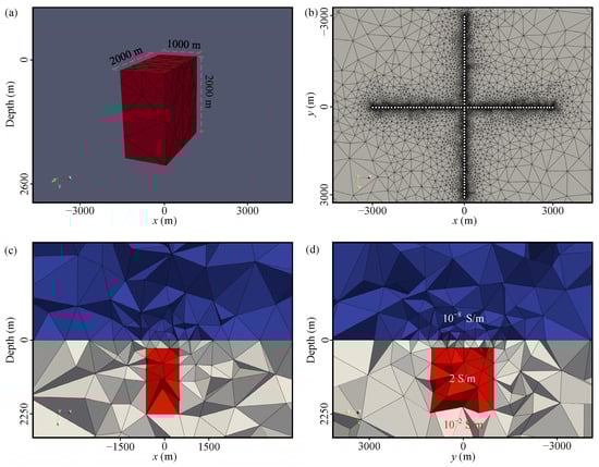 28]. In order to ensure a high modeling accuracy, the tetrahedral grids around observation stations need to be refined. For these models, the computational domain is discretized into 14,015,861 tetrahedra. The resistivity value for each body is listed in