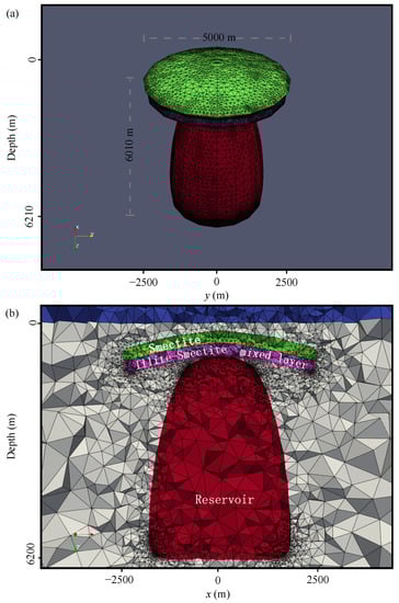 Figure 5, a hydrothermal system buried in a half-space is comprised of three parts, namely a smectite layer, an illite-smectite mixed layer, and a reservoir. The reservoir is underneath the two clay layers. The thickness was set to 320 m for both clay layers, and the lengths both in the